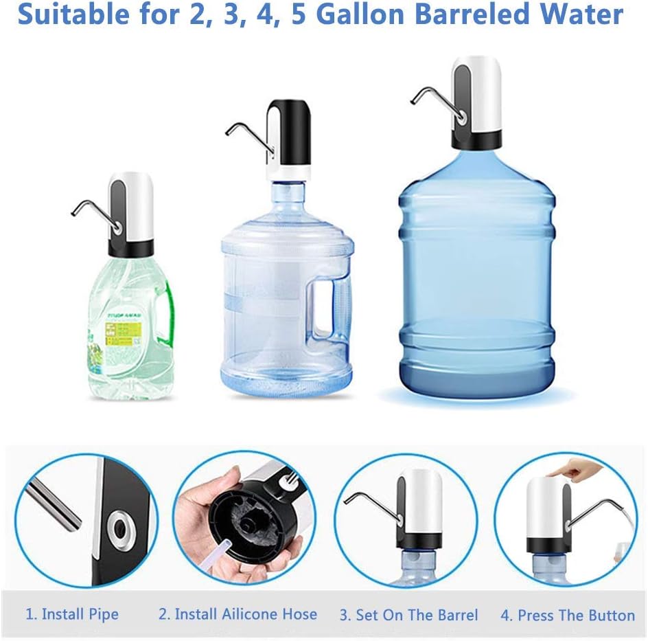 مضخة توزيع المياه الكهربائية المحمولة - مضخة مريحة قابلة لإعادة الشحن عبر منفذ USB لتوزيع المياه من الزجاجات الكبيرة بلمسة واحدة.